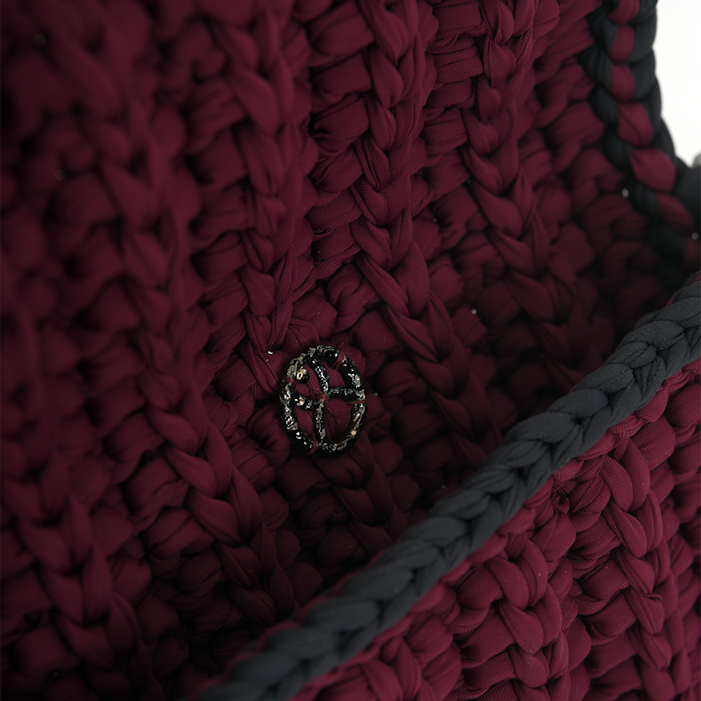 Handmade crochet knit bag that boasts remarkable durability, sun and fade resistance and lint-free behavior, making it ideal for socializing around the pool, the sea or any wet environment.
