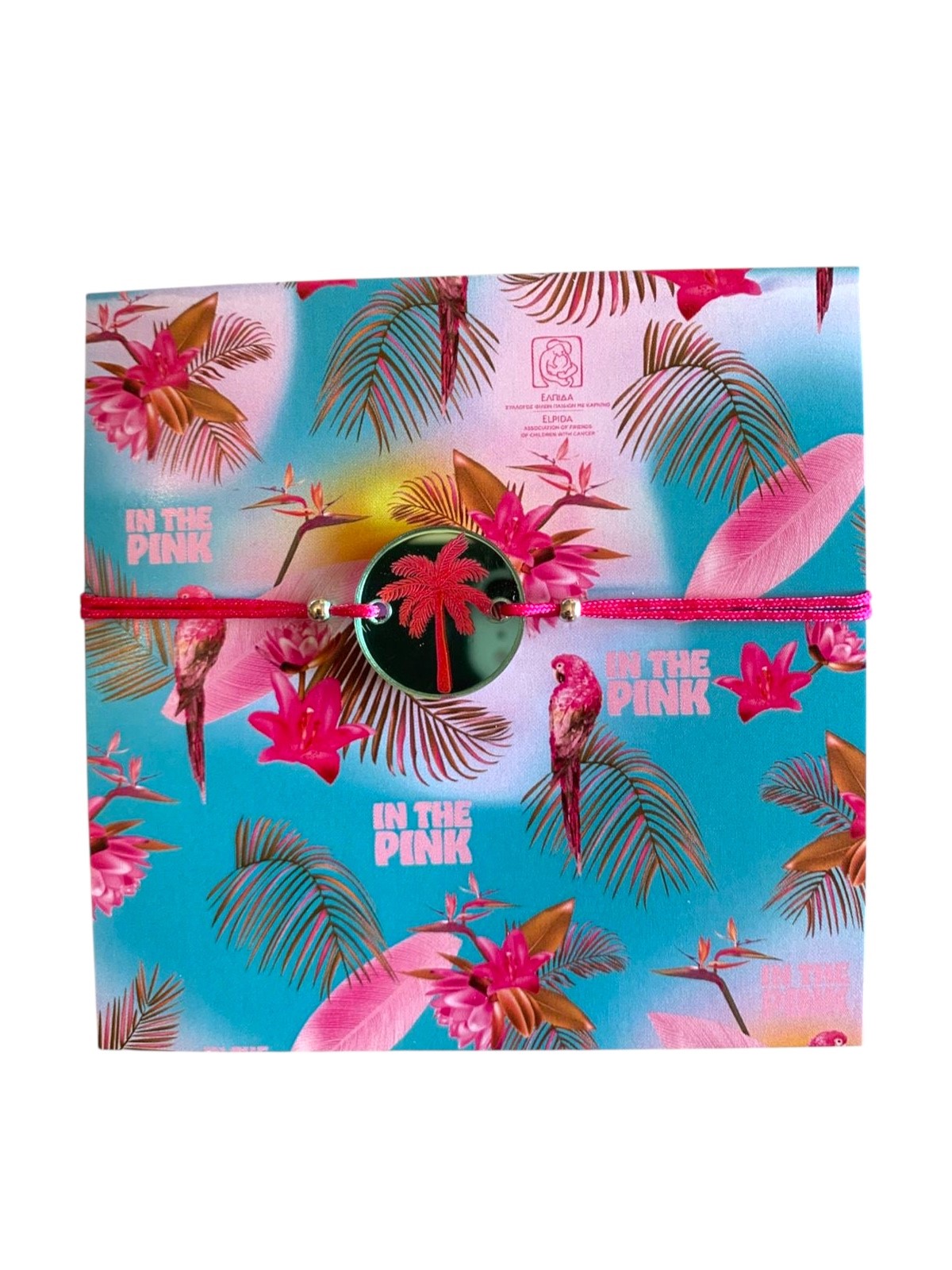 Bracelet with decorative plexiglass motif and cord, from the summer product line “In the Pink”. A new line that captures a positive attitude to life, full of health, hope and optimism, values ​​that we support with love for every child.