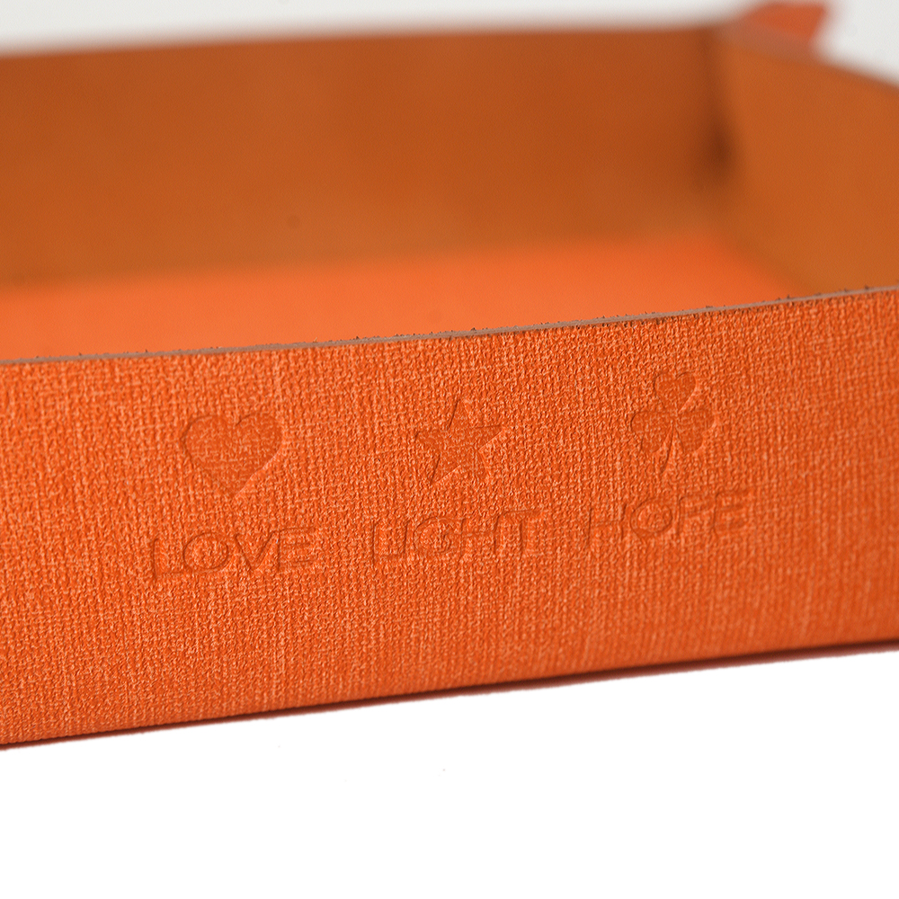 Πορτοκαλί Μικρός Δερμάτινος Δίσκος “LOVE-LIGHT-HOPE”
