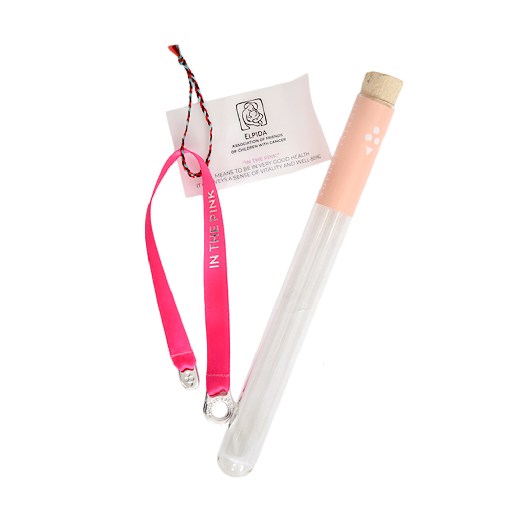 Βραχιόλι σατέν της καλοκαιρινής σειράς προϊόντων “In the Pink”. Μια νέα σειρά που αποτυπώνει μια θετική στάση ζωής, γεμάτη υγεία, ελπίδα και αισιοδοξία, αξίες που στηρίζουμε με αγάπη για κάθε παιδί.